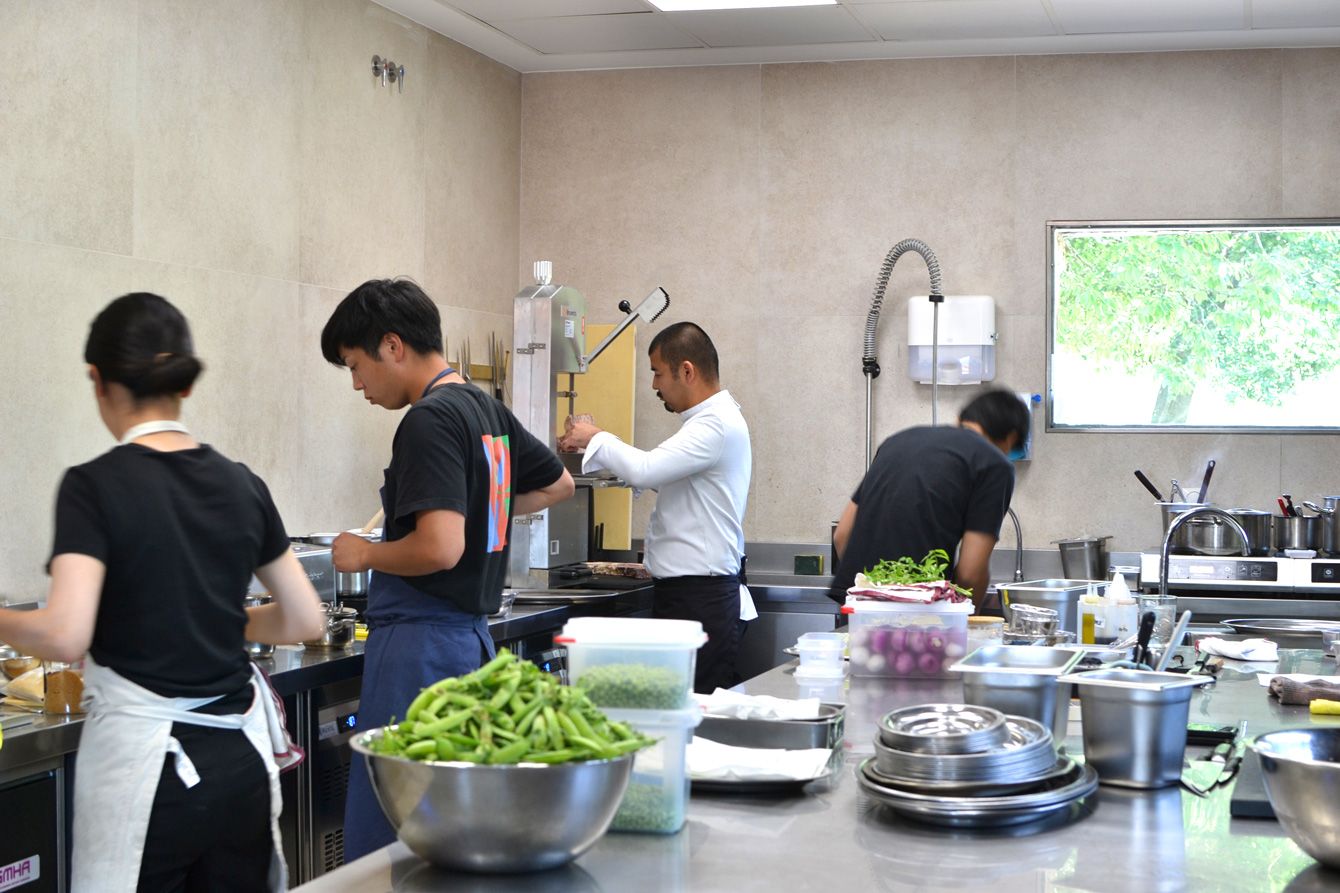 チスパの厨房。前田さんの他に日本人料理人4人、スペイン人のホールスタッフ2人が働いている