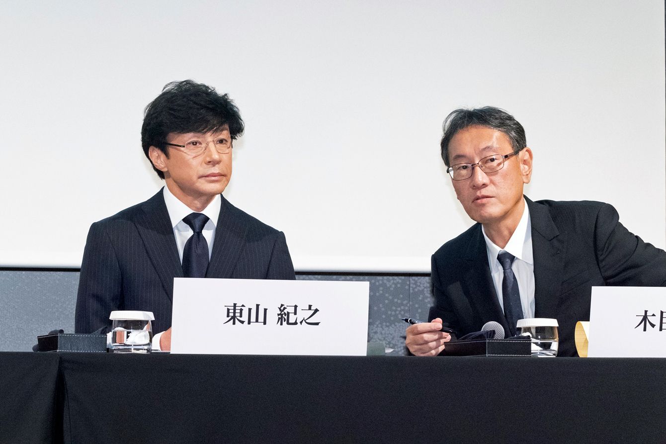 写真左)山田将之弁護士・ジャニーズ事務所チーフ・コンプライアンス・オフィサー、写真右)井ノ原快彦・ジャニーズアイランド社長