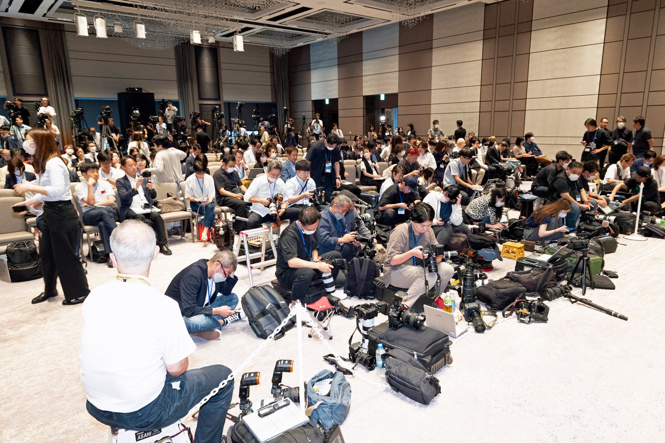 会見に集まった報道陣は合計294人。テレビ局各局も生中継を行った