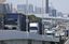 コンテナ埠頭や貨物ターミナルが集まる地区を走るトラック=2023年7月25日、東京都品川区