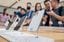 2023年9月22日、中国南部の広東省広州市にあるアップルストアで、最新のiPhoneスマートフォンを試す人々