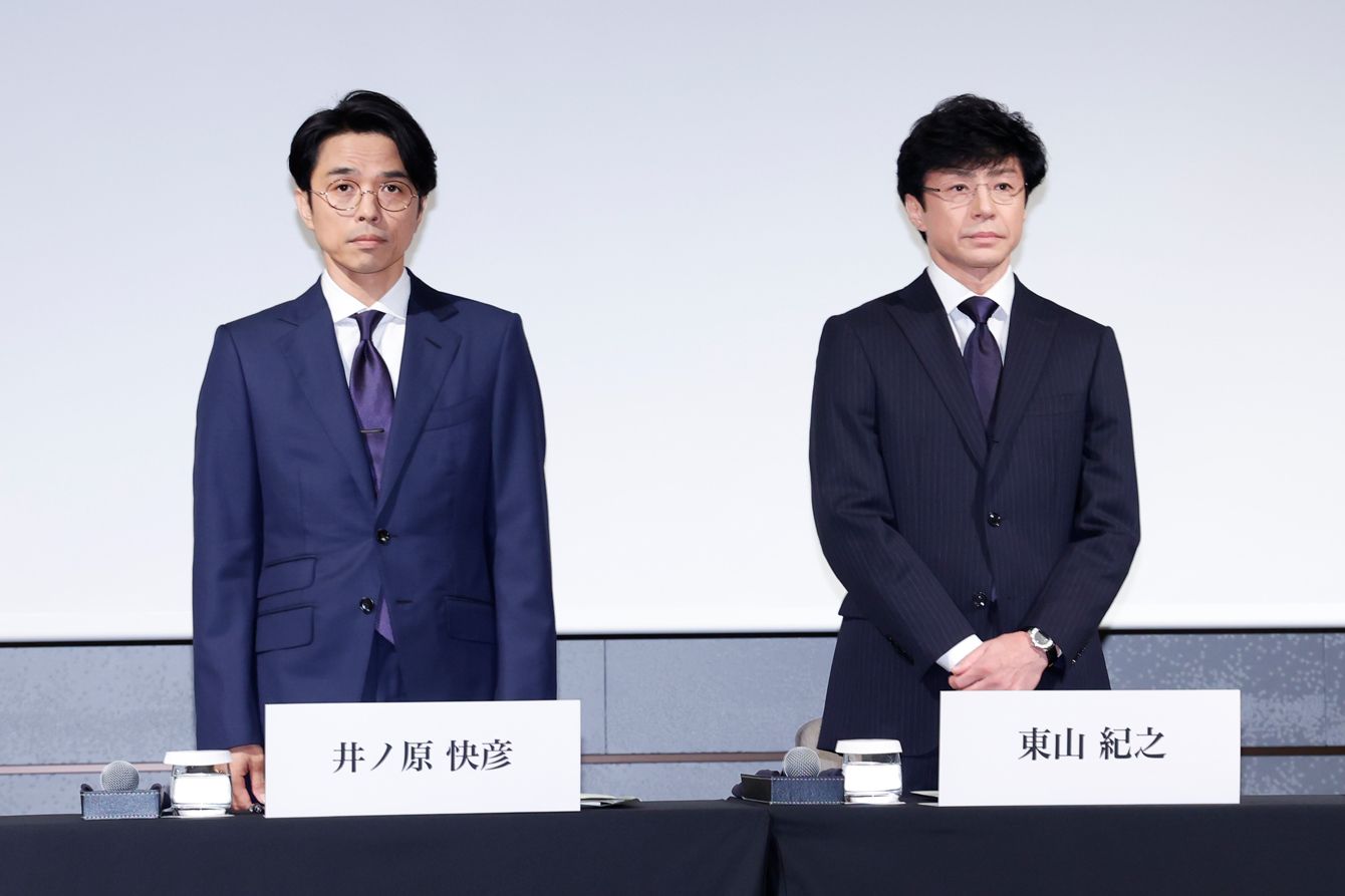 10月2日、記者会見に出席した東山紀之氏(右)と井ノ原快彦氏