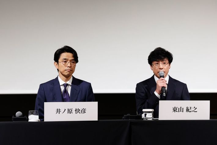 10月2日、記者会見に出席した東山紀之氏(右)と井ノ原快彦氏