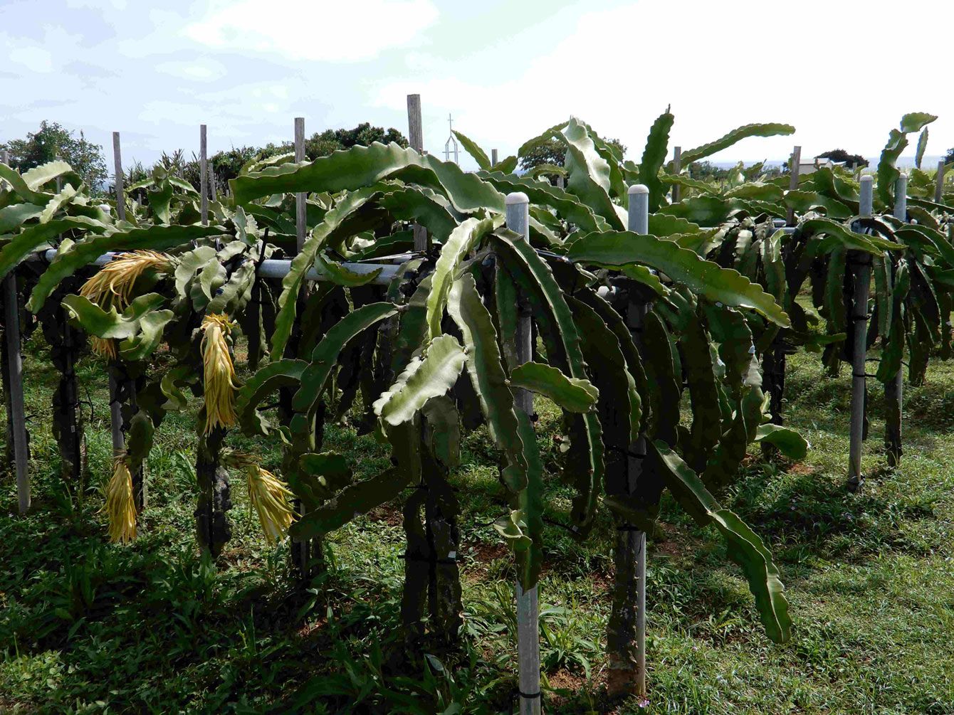 生命力の旺盛さを感じさせるドラゴンフルーツの木。昼間に訪れたため、花はしぼんでいた