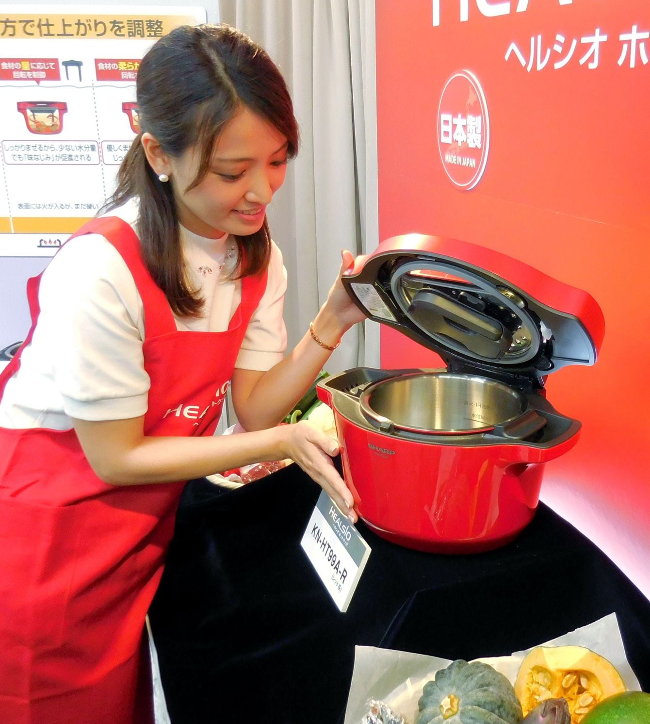 シャープが発売する水や火を使わず電気で調理できる電気無水鍋「ヘルシオ ホットクック」(=2015年9月17日)