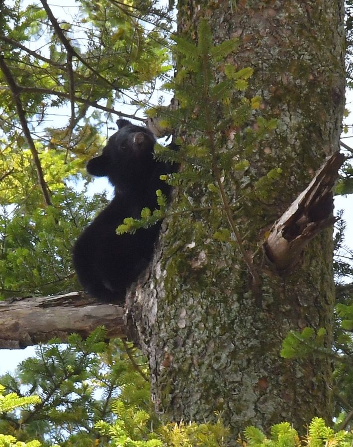 木の上に登ったクマ=2023年10月13日午前11時34分、秋田県仙北市角館