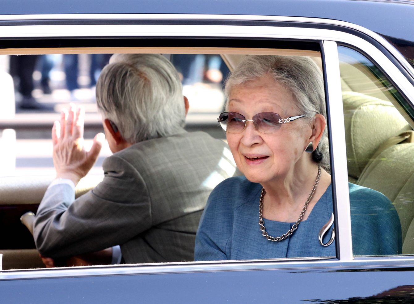 宿泊先に向かうため、近鉄奈良駅を出発される上皇ご夫妻=2023年5月16日、奈良市[代表撮影]