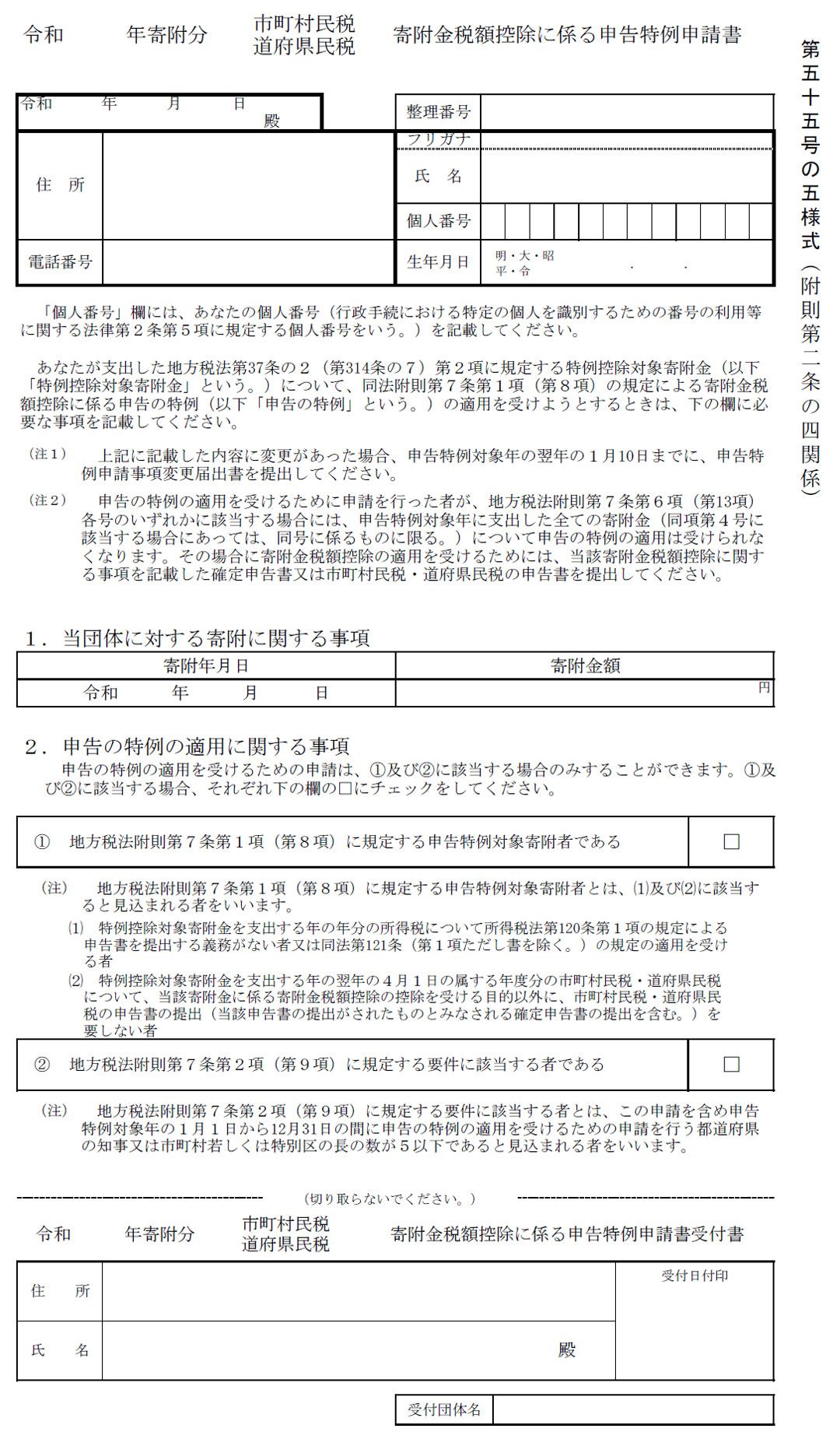 寄附金税額控除に係る申告特例申請書受付書