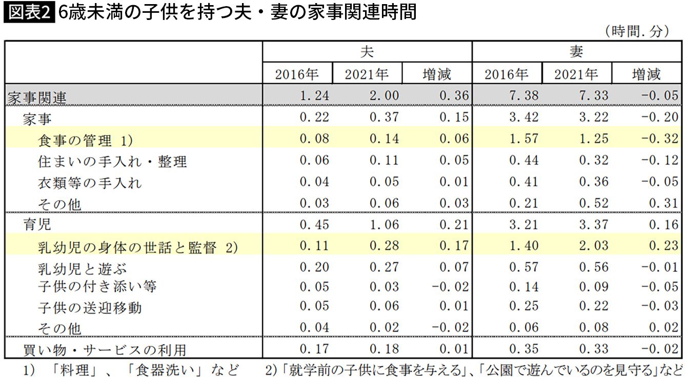 ※2016年、2021年、週全体平均、夫婦と子供の世帯 出典=総務省統計局「