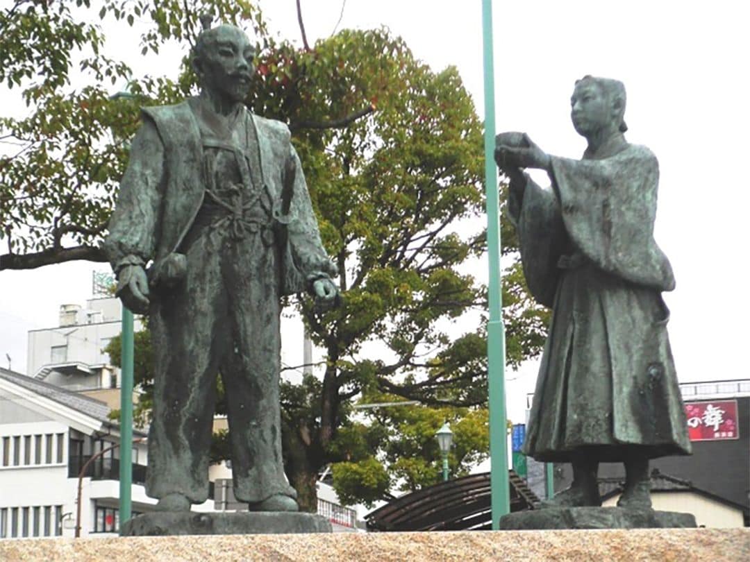 JR長浜駅前にある「秀吉公と石田三成公 出逢いの像」(写真=立花左近/CC BY-SA 3.0/