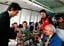 JAL公式絵葉書より。ジャンボジェットのファーストクラスに集まる客室乗務員(1970年代)。