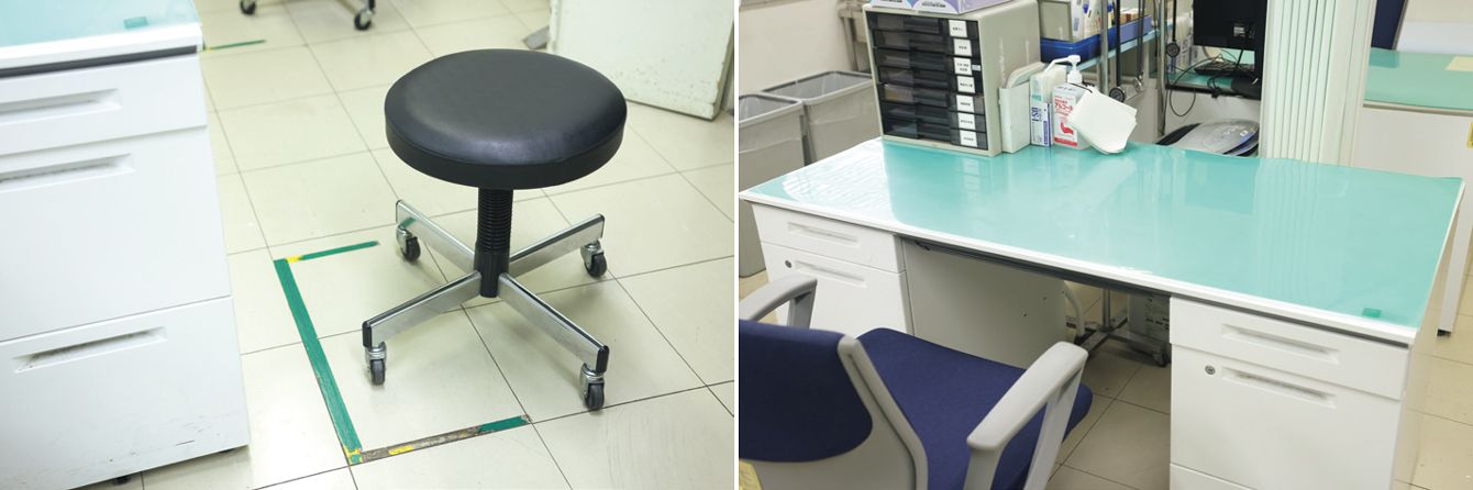 (左)越えてはいけない「線」。(右)「何も置かない」が基本のデスク。[出所=『