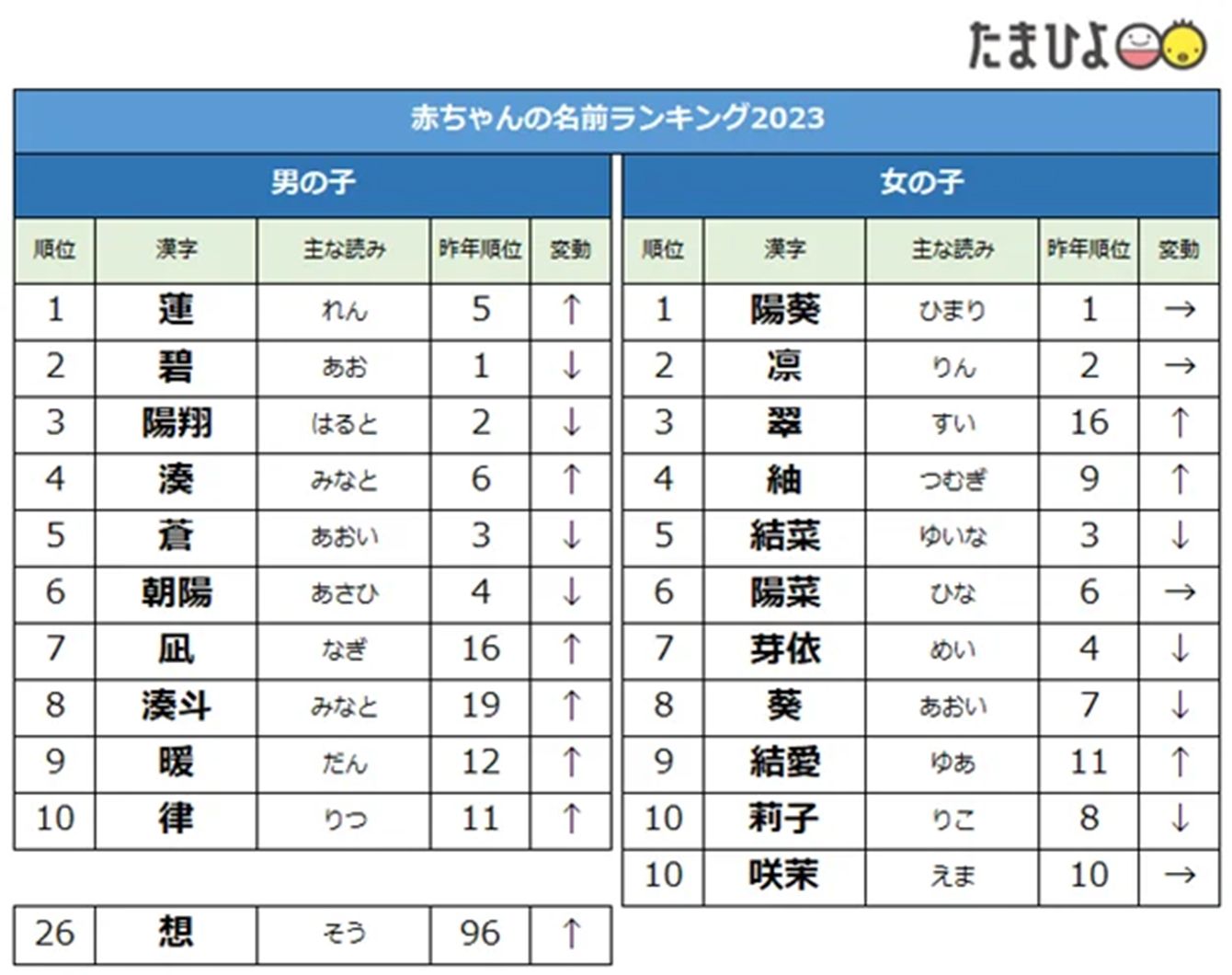 /「たまひよ 赤ちゃんの名前ランキング2023」より)