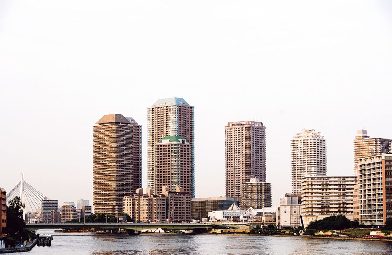 勝どきから見た中央区佃エリアに林立するタワマン。タワマンは規制緩和や耐震技術の進歩によって、2000年代初頭から多く建設されている。