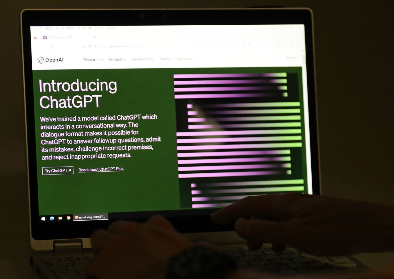 対話型人工知能(AI)「チャットGPT」のパソコン画面=2023年4月30日、東京都中央区