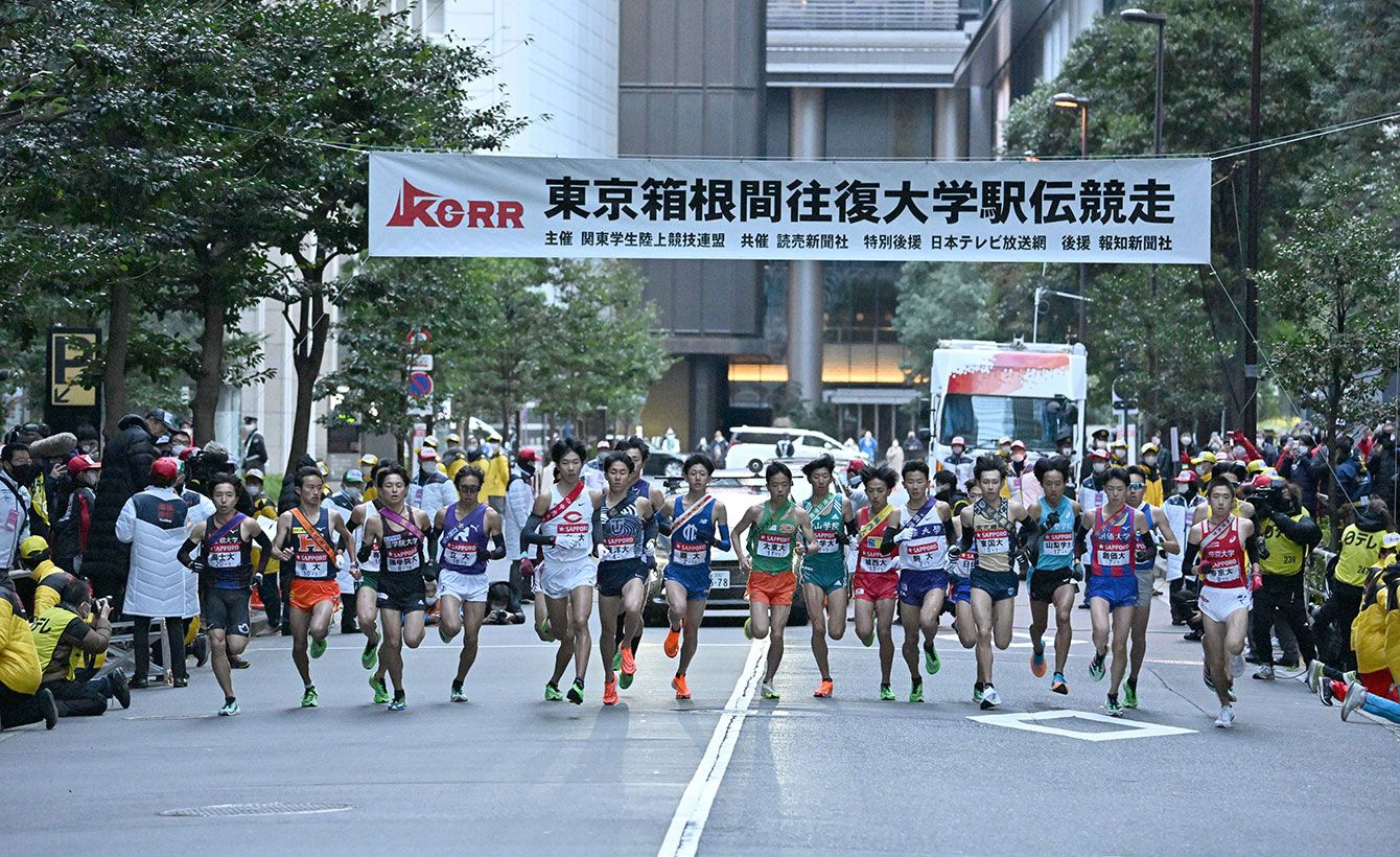 箱根駅伝/一斉にスタートする各校の選手たち=2023年1月2日、東京・大手町[代表撮影]