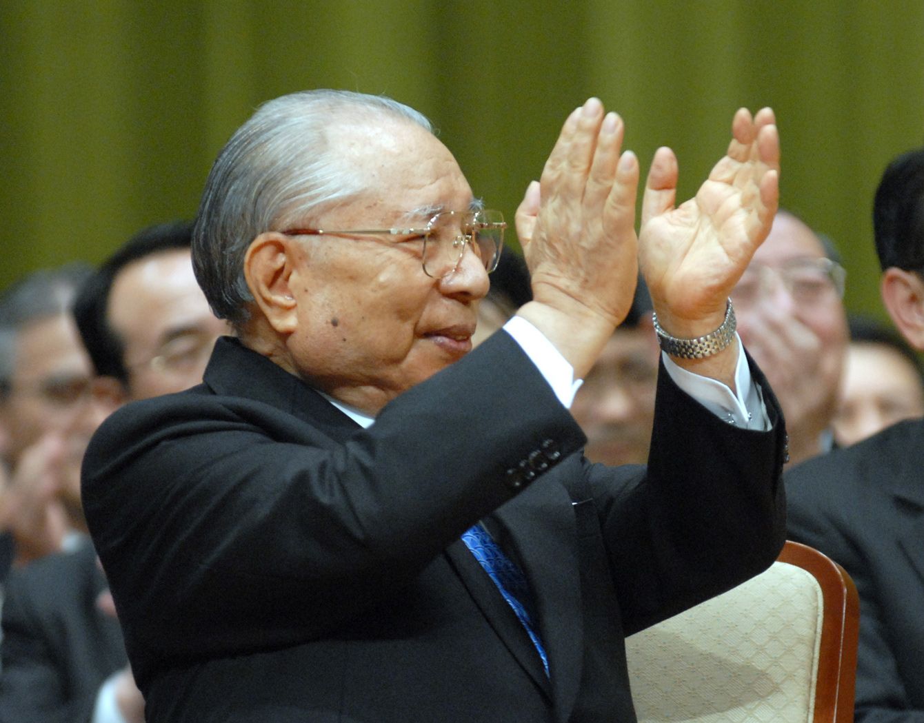 北京師範大学から名誉教授の称号を贈られ、拍手する創価学会の池田大作名誉会長(=2006年10月7日、東京・八王子市の創価大学)