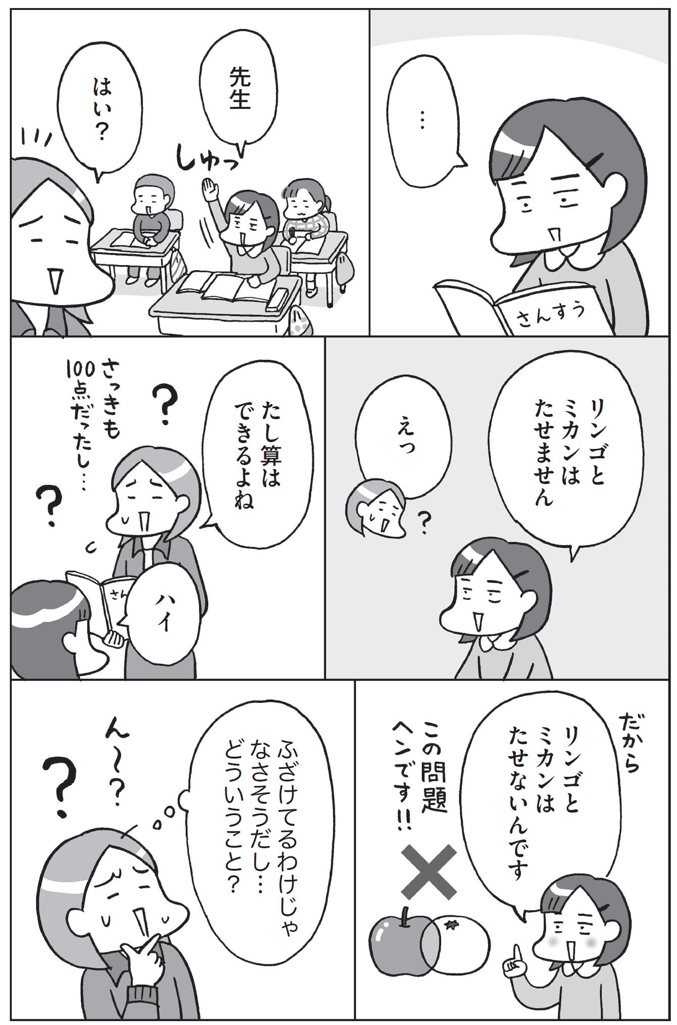 「リンゴ2個とミカン3個を足すと何個?」に「リンゴとミカンは足せません」と答える子に何を教えたらいいか