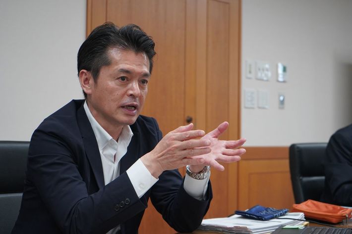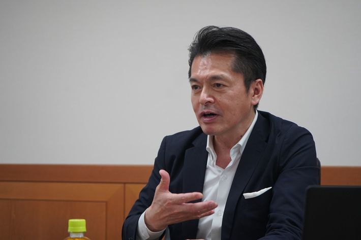インタビューに応じるヨンドシーホールディングス社長の増田英紀氏(撮影=プレジデントオンライン編集部)