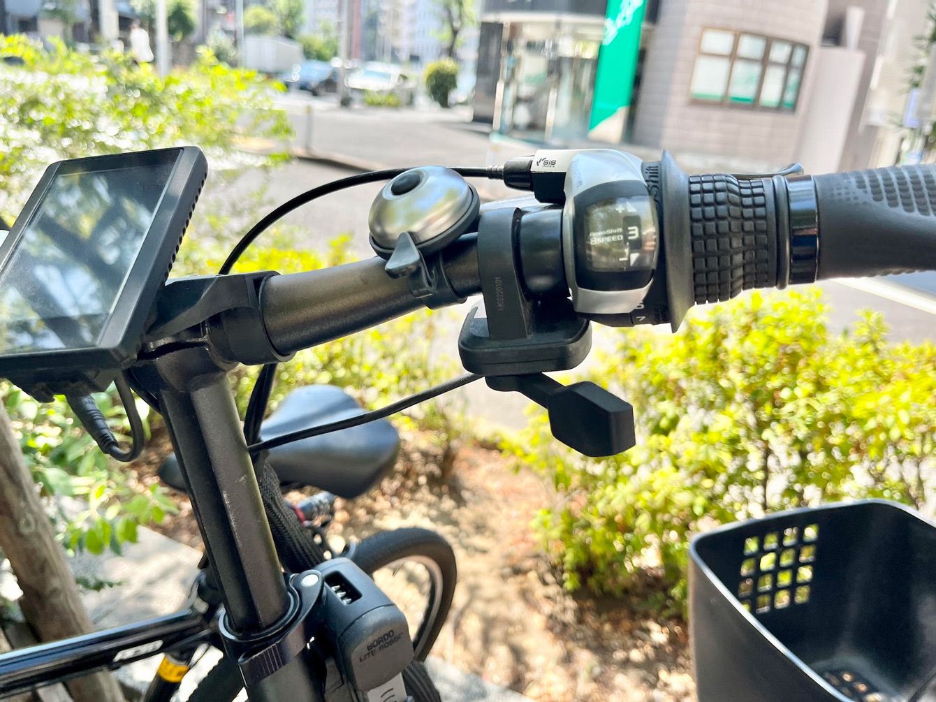 車道を走るフル電動自転車。ナンバープレートはなく、ペダルを漕がずに坂を上っていった