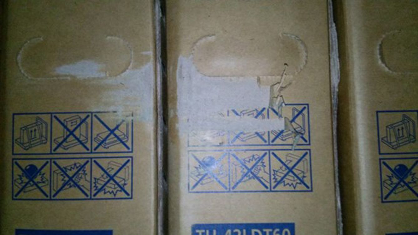 傷がついた段ボール箱。