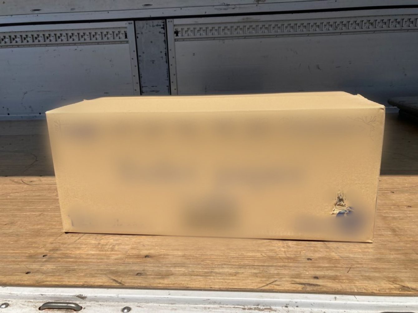 傷がついた段ボール箱。