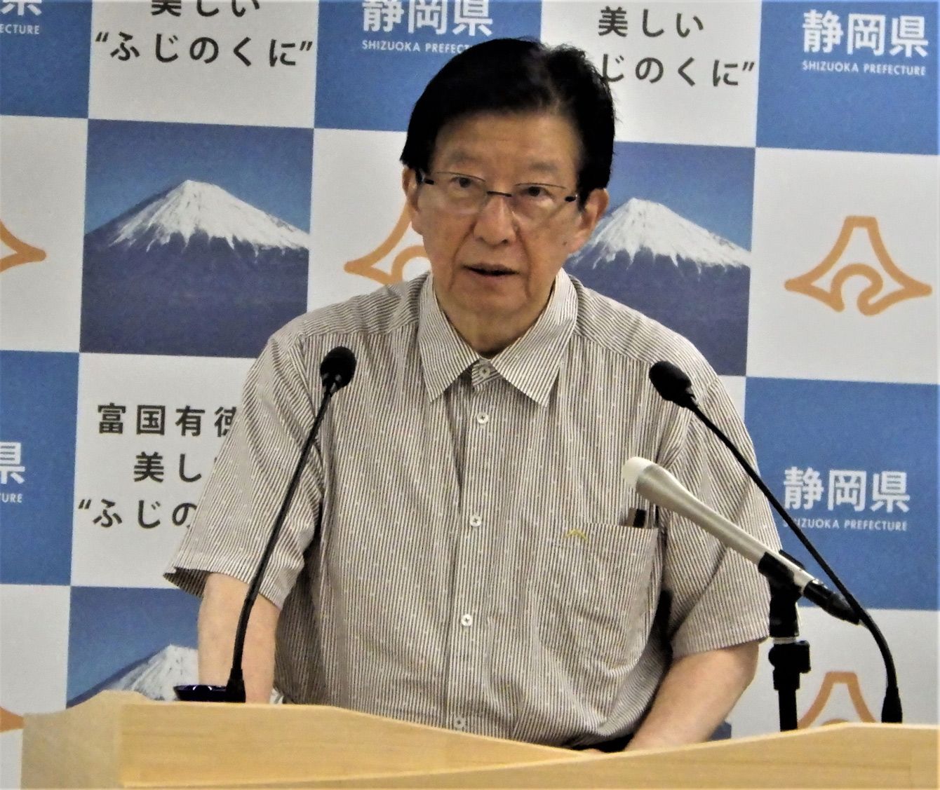 7月24日の会見で、「不適切発言」があれば辞職すると宣言した川勝知事(静岡県庁)