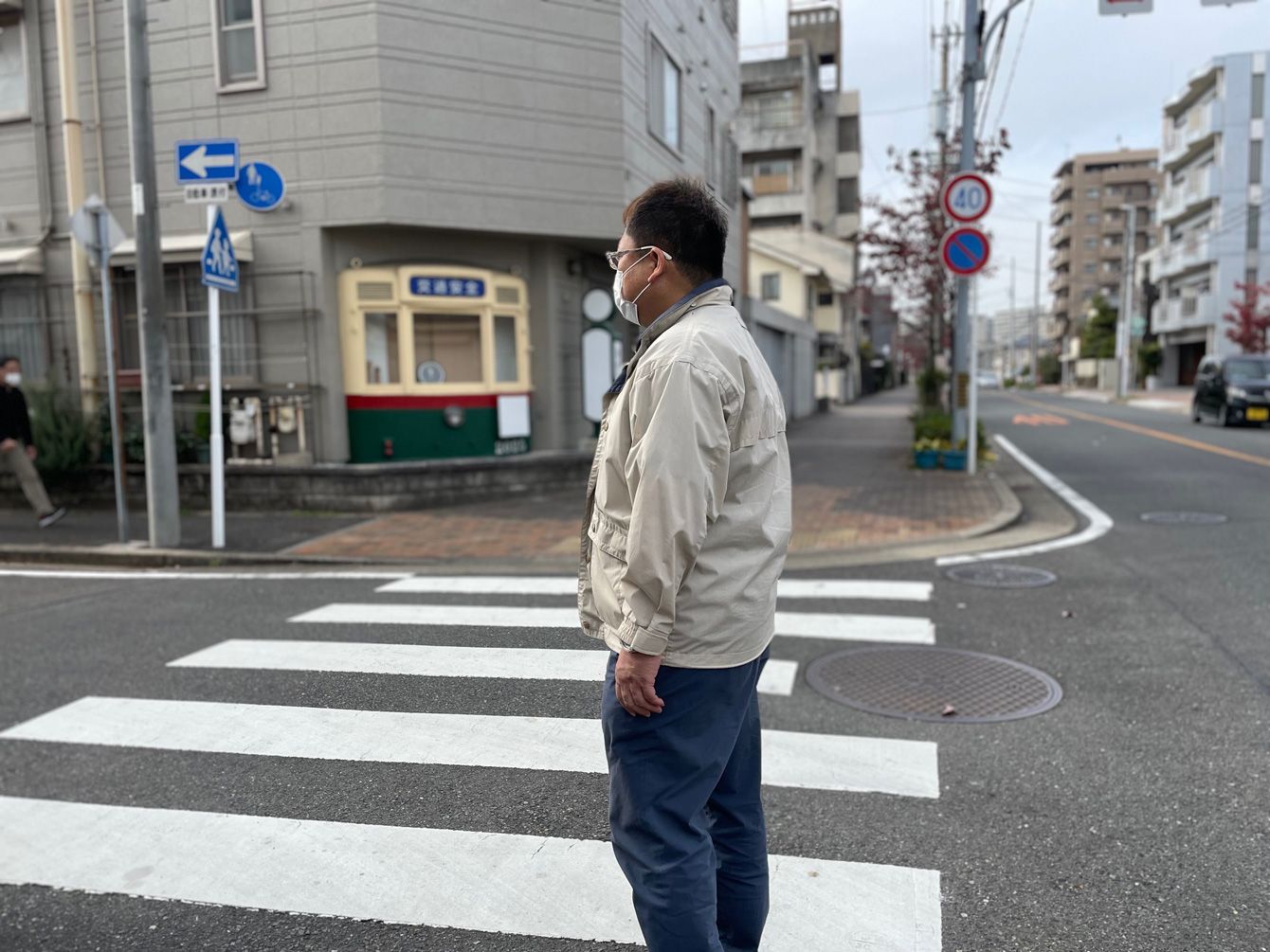 長男・貴仁さんが渡り切れなかった横断歩道を見つめる父・眞野哲さん