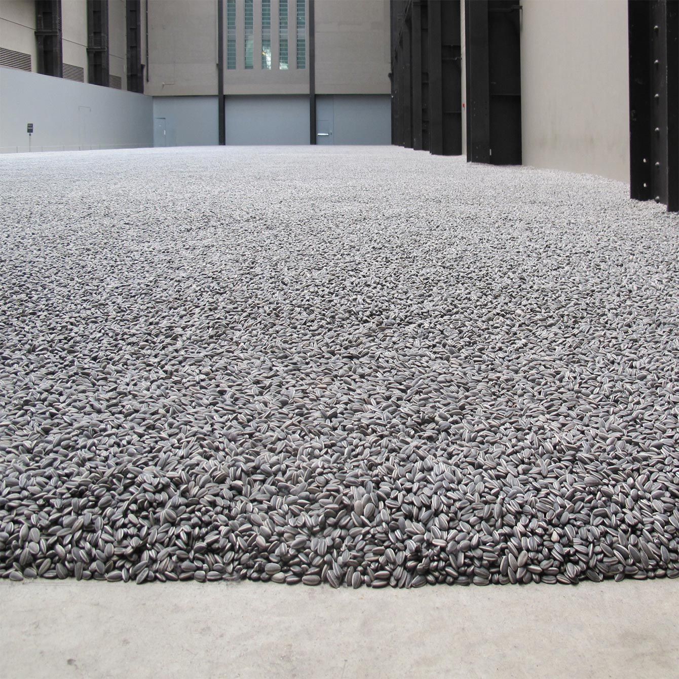 アイ・ウェイウェイ作「Sunflower seeds」。2011年。テート・モダン(タービンホール)でのインスタレーションの様子。何百万もの小さな手作り磁器が敷き詰められている(写真=CC-BY-SA-4.0/