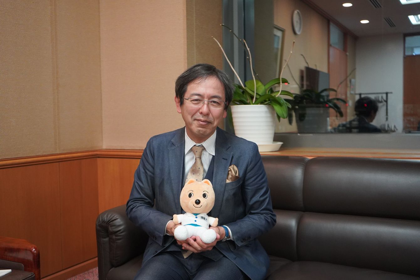 佐藤教授と国立情報学研究所のマスコットキャラクター「ビットくん」