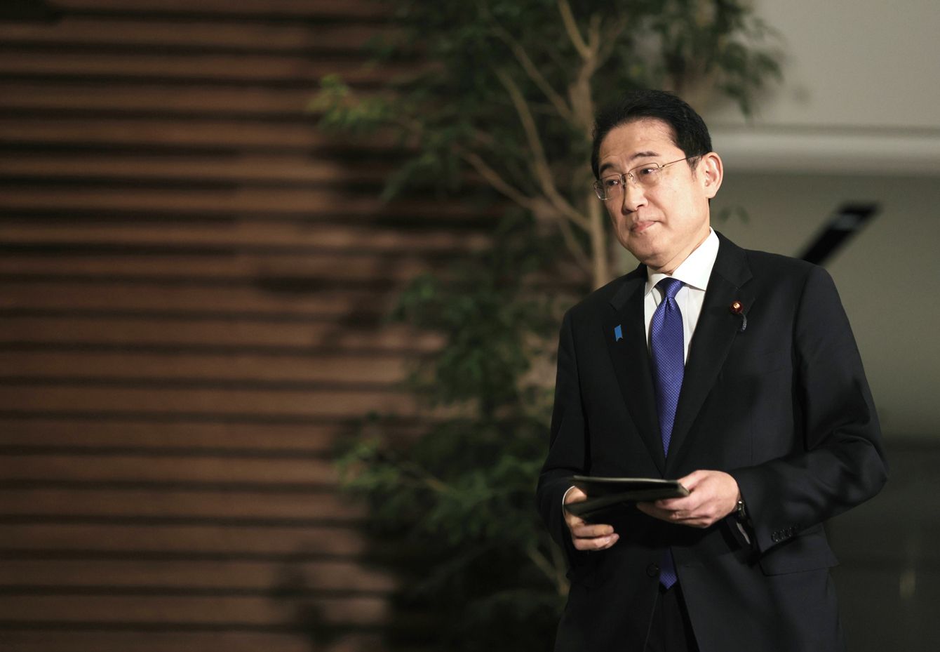 記者団の取材に応じ、首相官邸を出る岸田文雄首相=2023年12月20日、東京・永田町