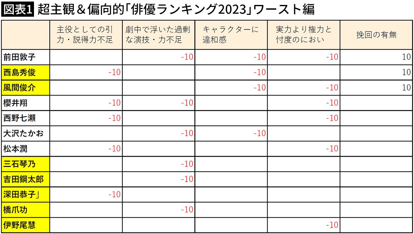 3位は西野七瀬、2位は前田敦子、1位は…国内ドラマ「2023年俳優ランキング」男女混合ワースト10