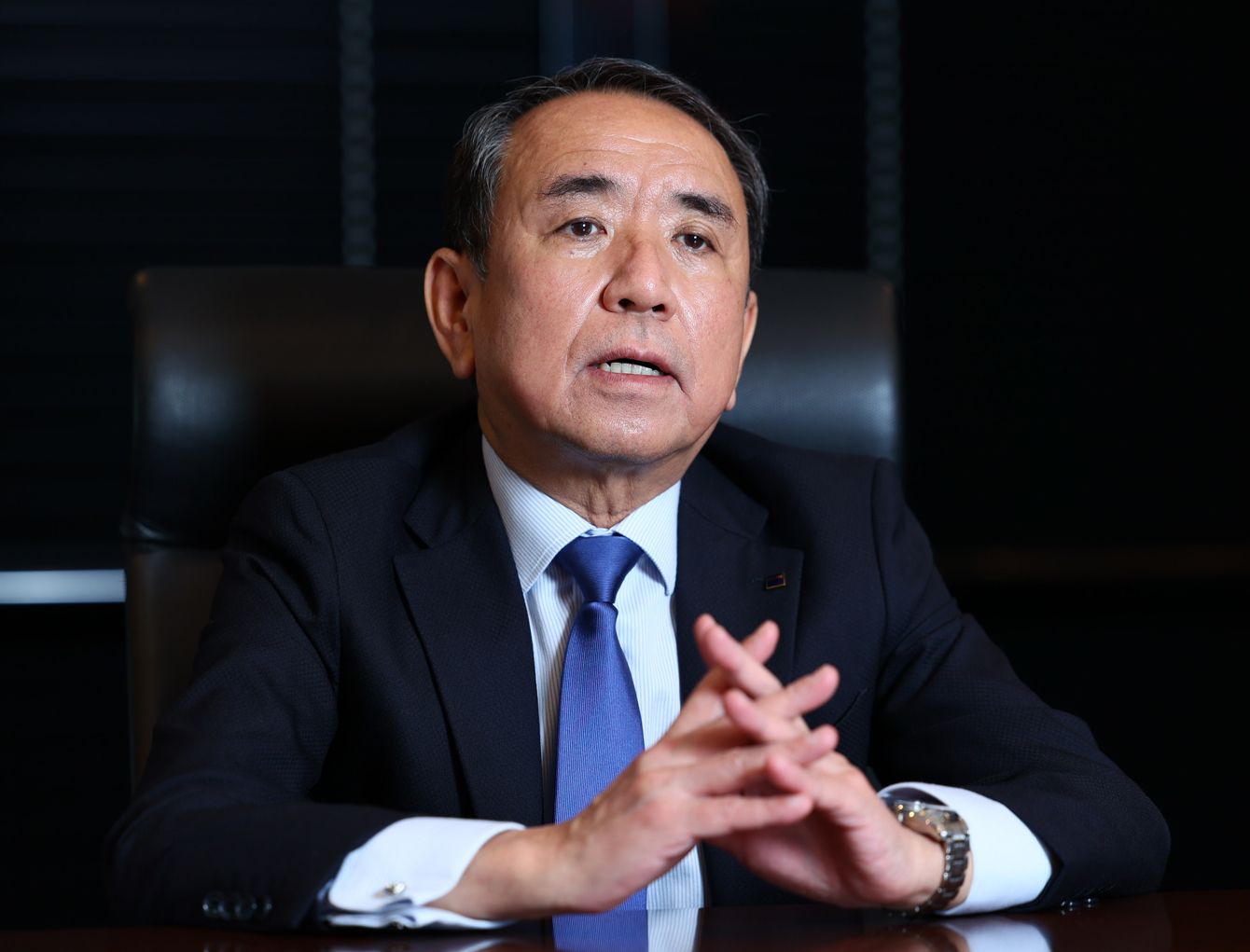 インタビューに答えるアサヒグループホールディングス(HD)の勝木敦志社長=2022年11月18日、東京都墨田区