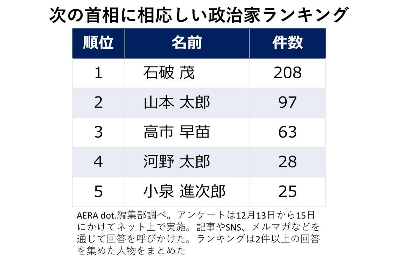 「次の首相」はだれが良い? 緊急アンケで1位は断トツで自民党石破茂氏、2位はれいわ山本太郎氏