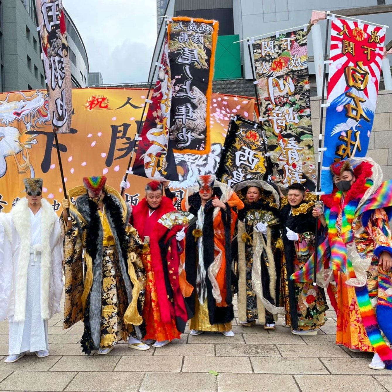 北九州市の新成人。ド派手な衣装は池田さんが手掛けている。(みやびのInstagramより)