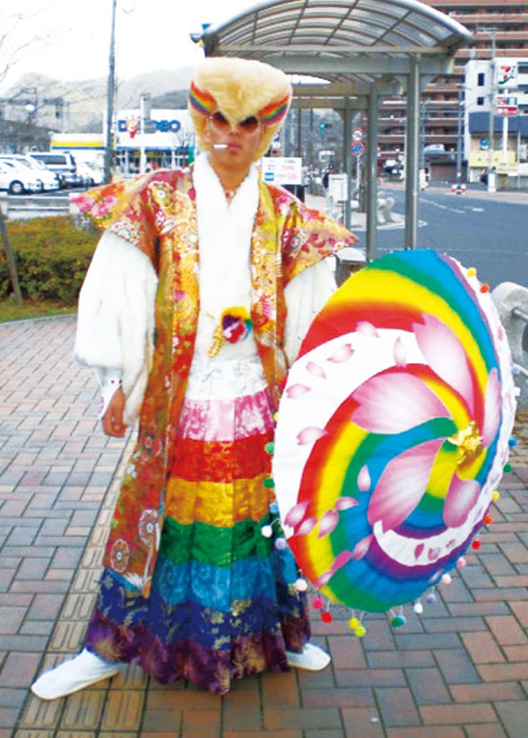 虹色の袴と色鮮やかな羽織、和傘…これがド派手成人式のスタンダートになった。