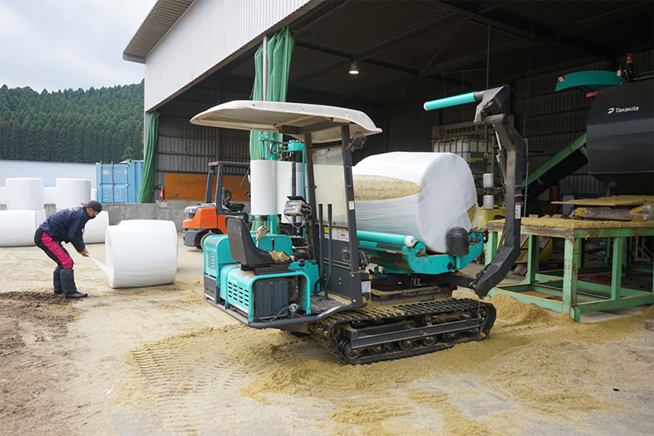 粉砕した生竹に糖蜜・乳酸菌・水を加えて攪拌していく