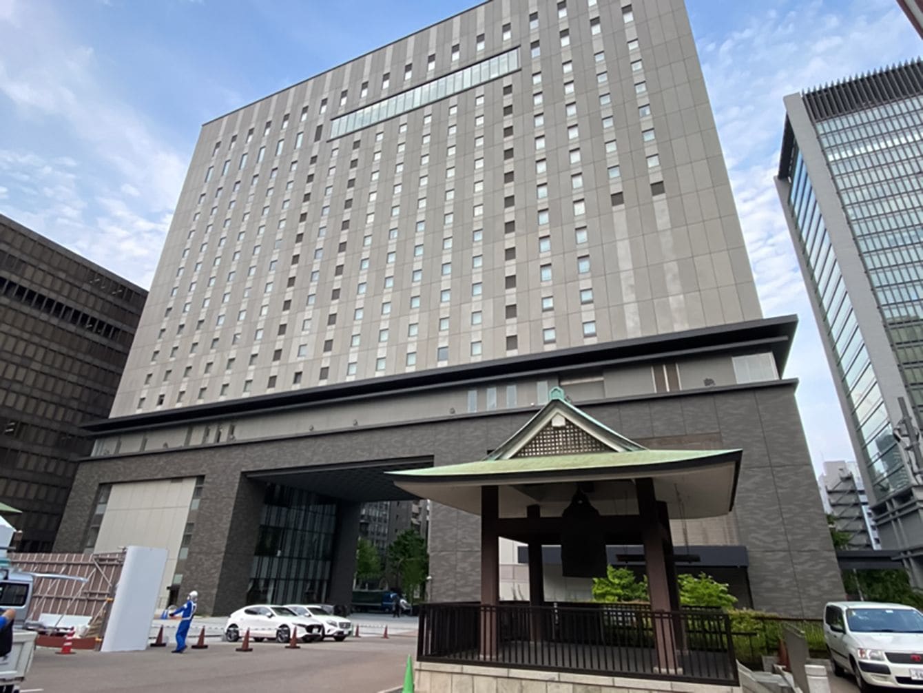 大阪の御堂筋に完成した寺院の山門とホテル一体型ビル