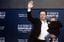 2023年12月16日、イタリア・ローマのサンタンジェロ城庭園で開催された政治フェスティバル「Atreju 2023」の3日目に出席し、手を振るテスラ、スペースX、Xのオーナーである米ハイテク企業家イーロン・マスク。