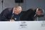 ダイハツ工業の試験認証不正に関する記者会見で陳謝する奥平総一郎社長(左)とトヨタ自動車の中嶋裕樹副社長=2023年12月20日午後、東京都文京区