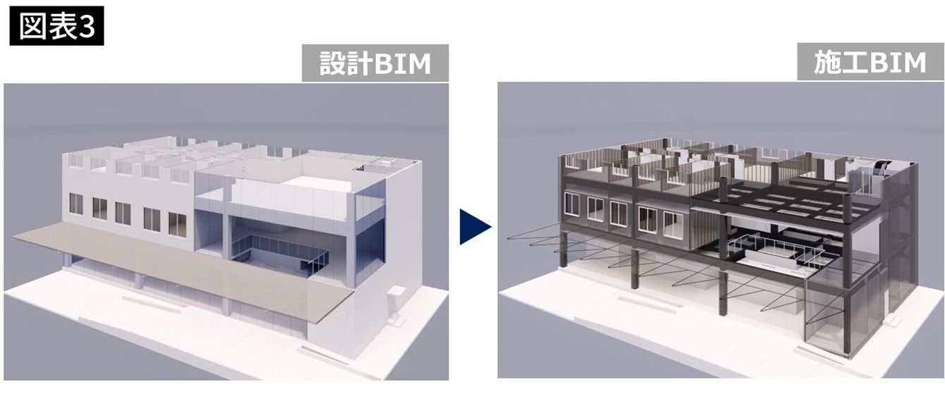 BIMを用いることで3Dモデル上で建設プロセスに応じた建設情報を追加し、詳細化できる(野原グループ提供)