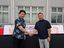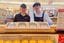 日本式アップルパイを世界に売り込むため、紀ノ国屋髙橋一実副社長(左)は台湾の催事で売り場に立った。右はUPSの安田誠一さん=23年5月