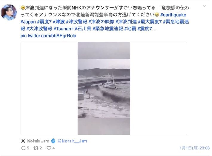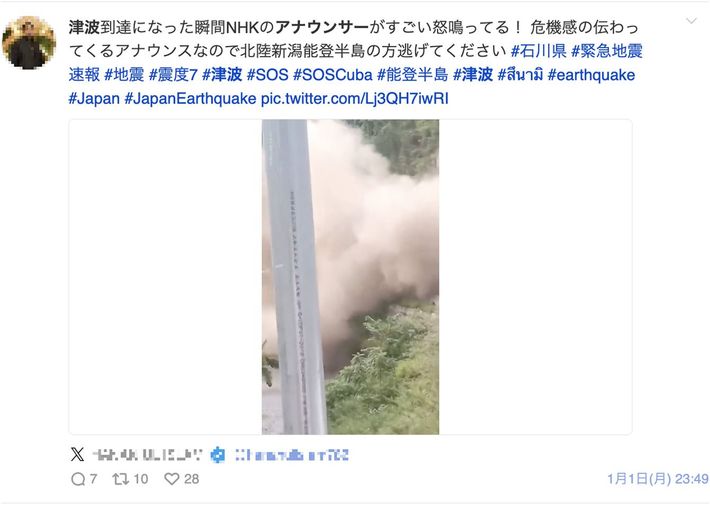 外国人ユーザーによるコピペ投稿の一例。土砂崩れ動画がついている(筆者提供)