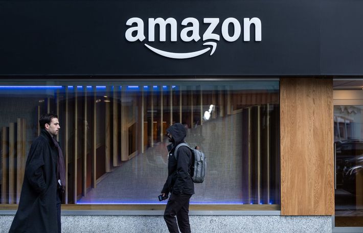 2024年1月18日、スイス、ダボス:ダボスのアマゾンパビリオンの前を歩く人々。