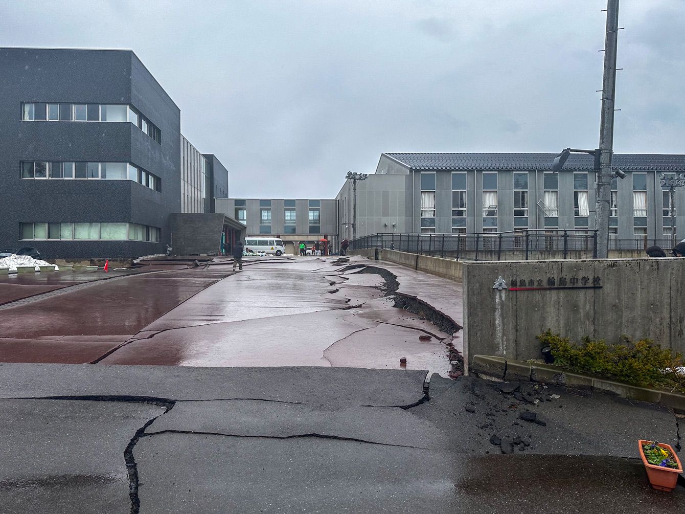 能登半島地震の後、避難所として使用されている輪島中学校。