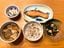 ある日の夕食。魚を中心に、具だくさん味噌汁や小鉢で野菜を摂取