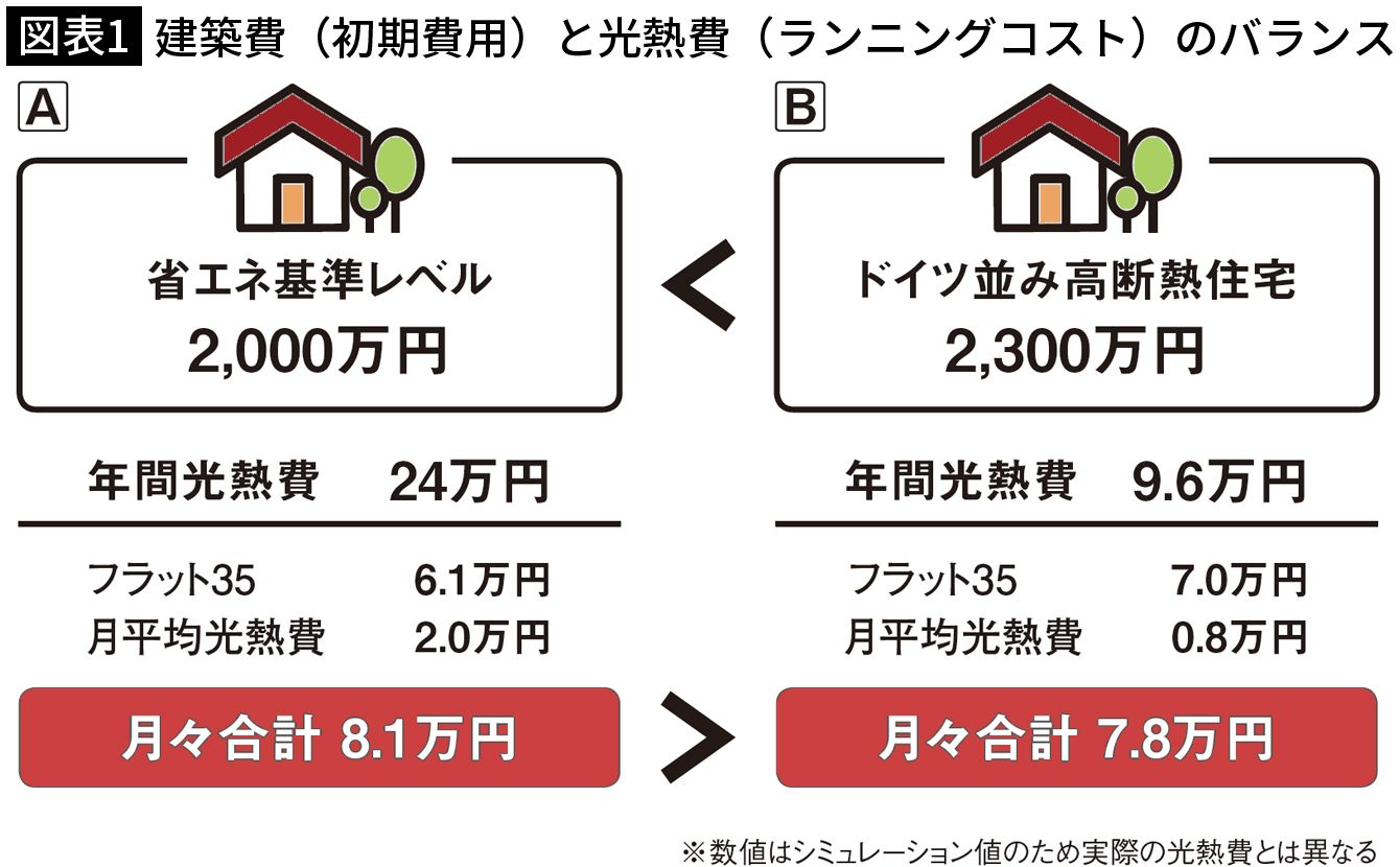 建築費(初期費用)と光熱費(ランニングコスト)のバランス(出所=『
