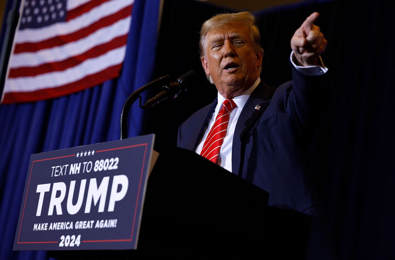 米大統領選で返り咲きを目指すトランプ前大統領(2024年1月19日、ニューハンプシャー州コンコード)