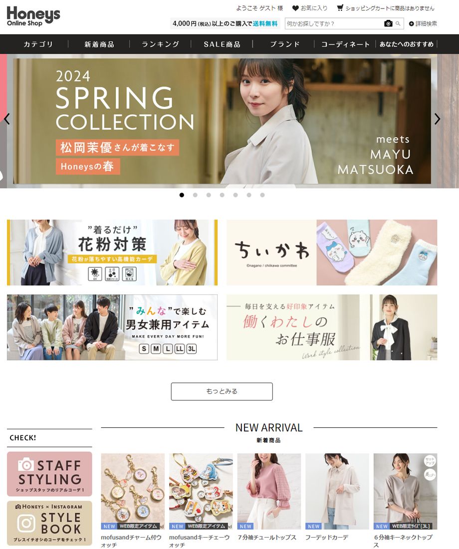 安価な女性アパレルが並んでいる=ハニーズホームページより