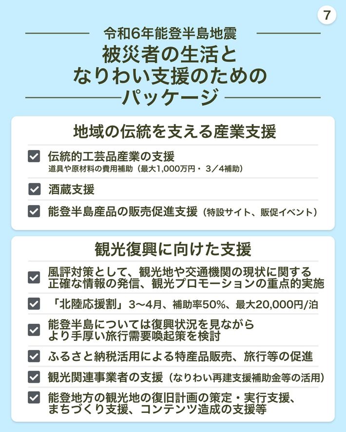 令和6年能登半島地震 被災者支援情報「被災者の生活となりわい支援のためのパッケージ」